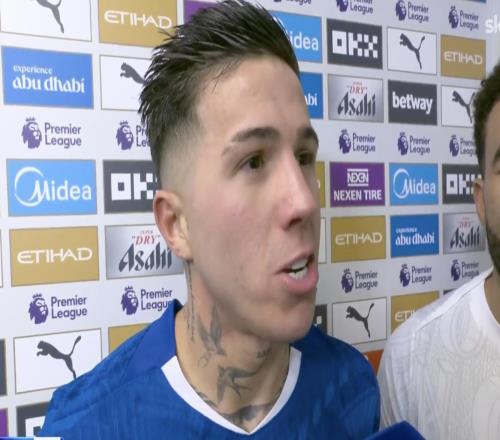 英超第20轮,切尔西客场1-1战平曼城,赛后,此役打入绝平进球的切尔西中场恩佐接受了天空体育的采访。