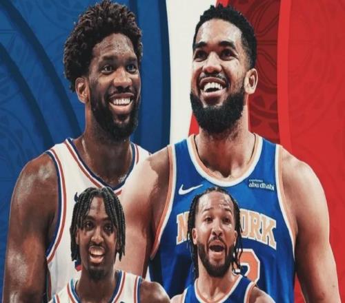 雷速体育10月4日报道宣称 今日,NBA阿布扎比赛的第二战,尼克斯继续对阵76人。NBA官方晒出一张海报,尼克斯内外双核唐斯、布伦森,以及76人的内外双核恩比德与马克西均出现在海报