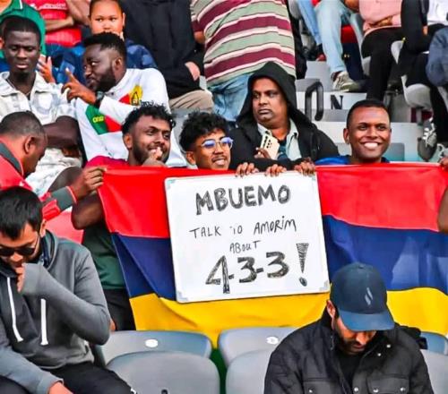 雷速体育10月9日报道宣称 世界杯非洲区预选赛第9轮,喀麦隆客场2-0战胜毛里求斯。在比赛看台上,有毛里求斯球迷举标语调侃效力于曼联的喀麦隆前锋姆伯莫和曼联主帅阿莫林。标